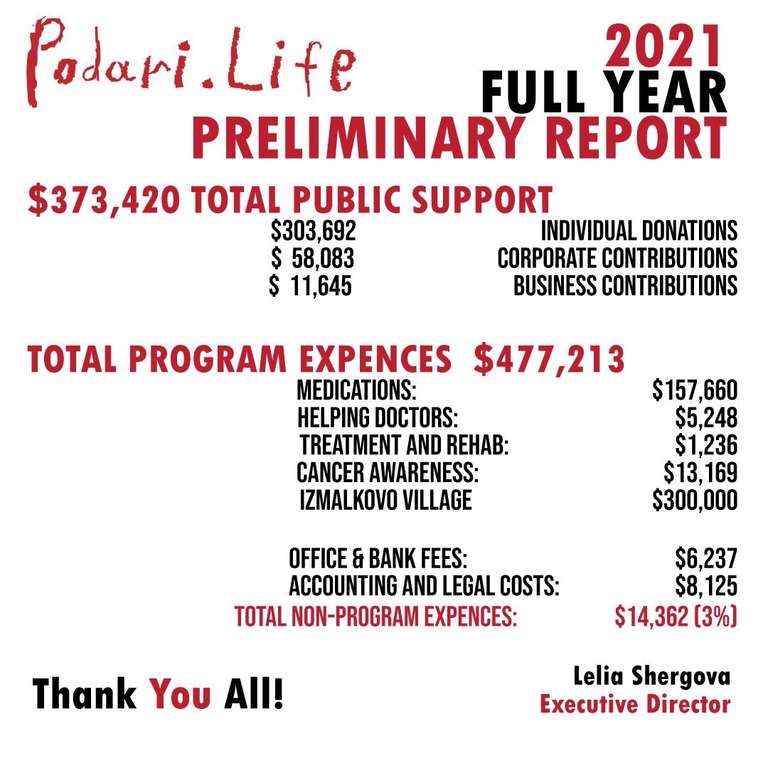 This program provides doctors, hospitals, and researchers with access to up-to-date Western academic and clinical research through journal and database subscriptions funded by Podari.Life. It also offers grants for cancer researchers to attend international conferences and exchange programs. In 2021, Podari.Life spent $5,248 on this program, as most conferences were canceled.Medication for Pediatric Cancer Patients: